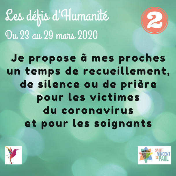 Dans cette période troublée, il est bon de se recentrer sur l'essentiel, de se ressourcer, de se rapprocher des autres (par téléphone, ...) et de se tourner vers Dieu.